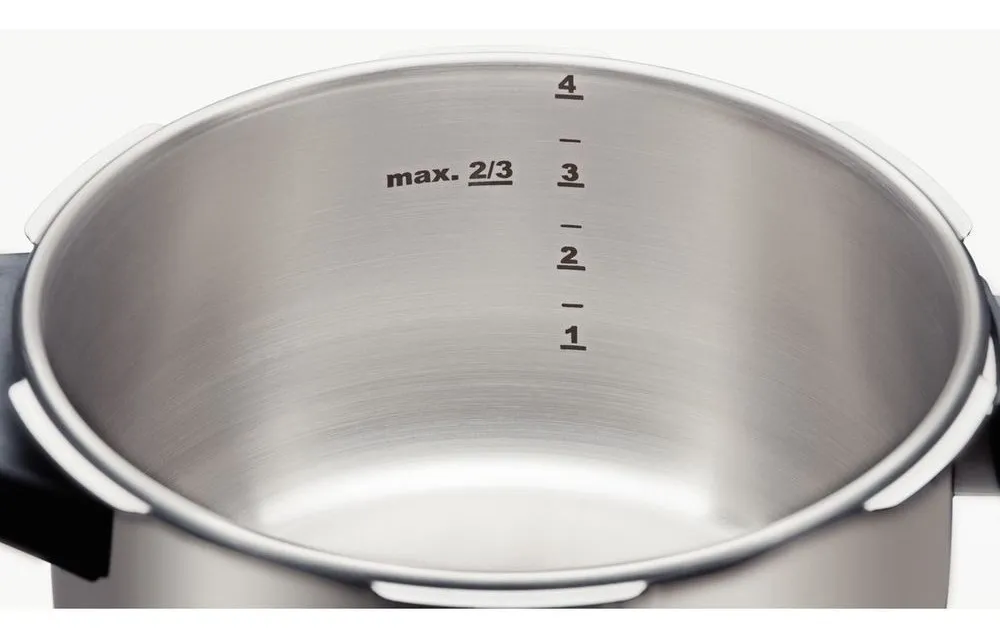 Produzida em aço inox e equipada com fundo triplo (aço inox + alumínio + aço inox), distribui o calor de forma uniforme, garantindo um cozimento mais rápido e homogêneo.